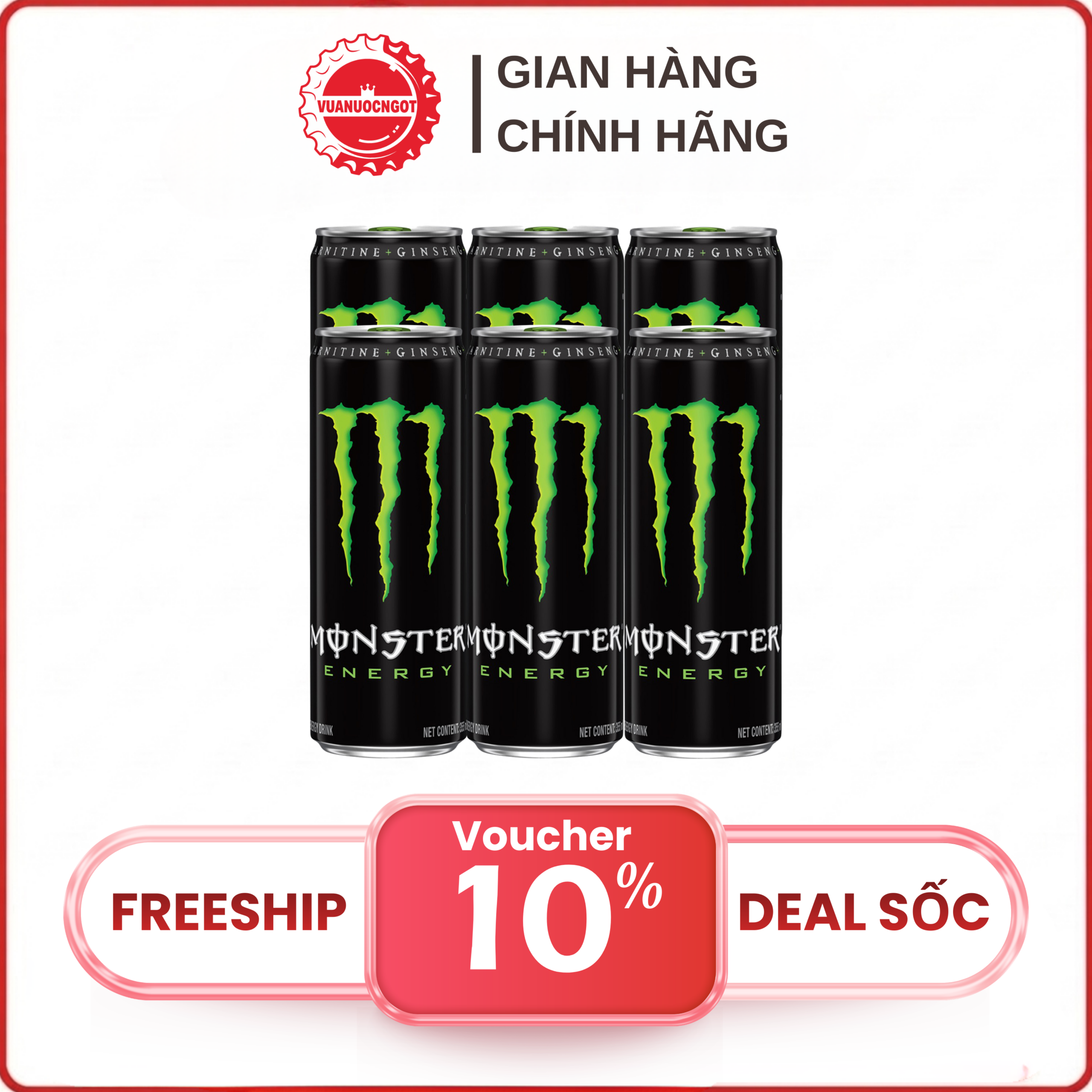🥤 Lốc 6 Lon Nước Giải Khát Tăng Lực Monster Energy 355ml 🥤